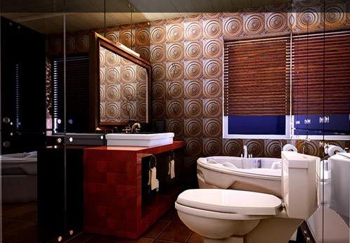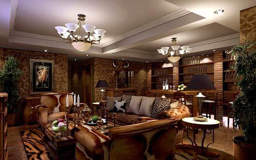 客廳采用深色壁紙、厚重吊頂及實(shí)木家具來營造一個(gè)自然、莊重的美式鄉(xiāng)村風(fēng)格。用吊頂分割區(qū)域的方法劃分出“會(huì)客區(qū)”和“休閑區(qū)”。會(huì)客區(qū)由皮質(zhì)的沙發(fā)、厚重的實(shí)木茶幾組成,再配以墻面的藝術(shù)掛畫及古樸的飾品,休閑區(qū)采用自然樸實(shí)的紅磚加實(shí)木板做成了酒水展示收藏柜,把整體美式風(fēng)格表現(xiàn)的淋漓盡致。