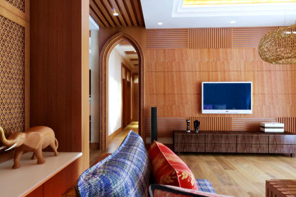 至于設計所需要的材料,木材、藤、竹成為室內裝飾首選。這些純天然的材質,散發(fā)著濃烈的自然氣息。它們所表現(xiàn)出人的手工痕跡,傳遞出一種人性化的東西,自然材料與人工材料相結合的系列家具,使質感的對比,通過不同材料的視覺的反差,使每一個觀賞者及住宅的居住者能品味到不同材料的細節(jié),呈現(xiàn)出東南亞室內風情的美。