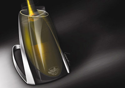 這是一款香檳新革命的概念設計,由法國設計師Thomas Lemaire設計,它被名為“Dry Blizzard”,這一概念有助于在任何情況下都能保持香檳的鮮度!在它的底部有一個干冰裝置,這一裝置里面有一個電池和一個小型制冷系統,能夠制造出冷空氣。使您隨時都能飲用到在理想溫度下保存鮮度的香檳。再用上與其配套的造型獨特的酒杯,能立即讓您充分享受到這種最豪華的奢侈。