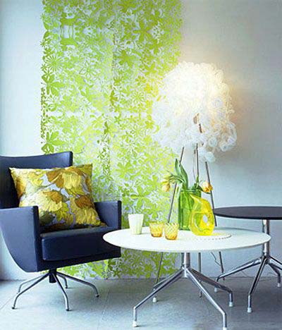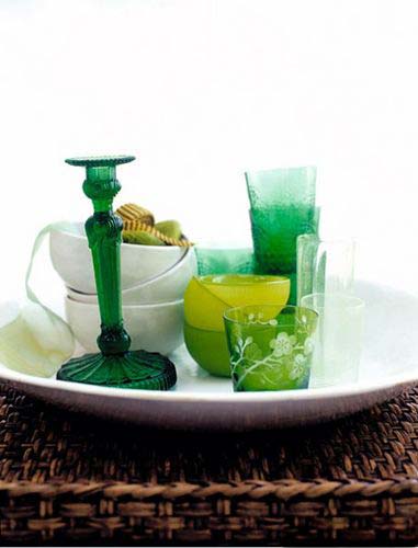搭配: 青檸色玻璃器皿,綠葉花草抱枕