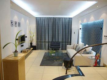 三、客廳或門廳兼餐廳用。在這種格局下,餐區的位置以鄰接廚房并靠近客廳最為適當,它可以縮短膳食供應和就座進餐的走動線路,同時也可避免菜湯、食物弄臟地板。餐廳與客廳之間可采用靈活處理,如用壁式家具作閉合式分隔,用屏風、花格作半開放式的分隔,用矮樹或綠色植物作象征性的分隔。這種格局下的餐廳應注意要與主要空間即客廳在格調上保持協調統一,并且不妨礙通行。