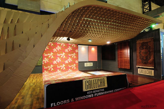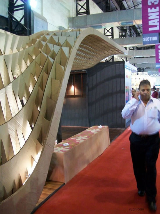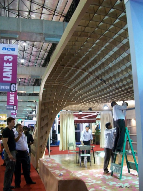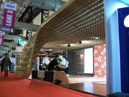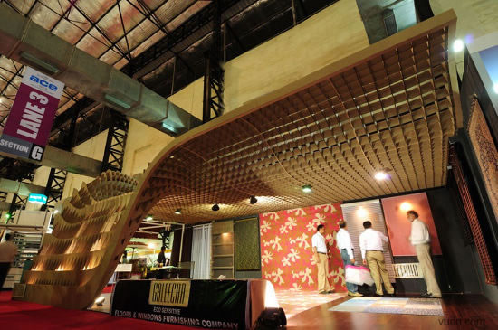 這個位于印度孟買的為ACE建筑展準備的臨時展廳,是根據參數化軟件原理而設計。該臨時展廳長20*6米,由110個工業模具和激光切片紙板制作而成。參展過后,制作的模板和紙板參展商會循環利用。