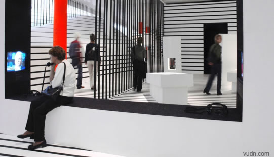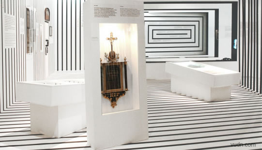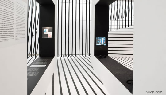 Gewerk使用白色木頭和黑色條紋兩個主要成分,在設計380平方米的Goodbye & Hello展覽中,其位于伯爾尼。
