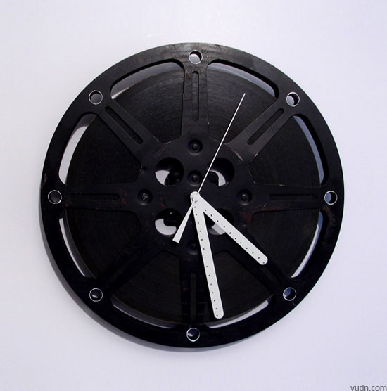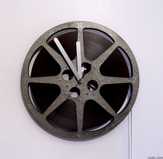 Kathy和Arnie手工制作的這些電影膠片墻鐘也許是最適合老電影迷的時計了,這些電影拷貝每一個都是經歷時間磨礪的,磕碰刮擦留下的痕跡,當年的放映人在某個地方標注的不起眼的數字、文字,這些特征讓每個拷貝都具有唯一性,設計師又根據孔距、顏色、結構的不同,搭配合適風格的指針,個個鐘表都是收藏品級別。