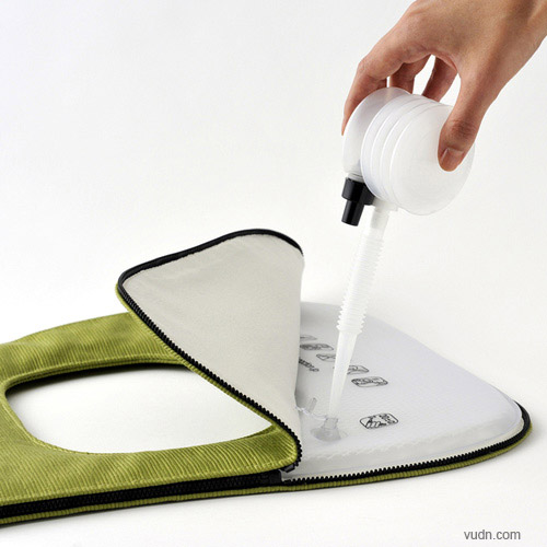 Funaction f.Cushion坐墊由Tetsu Kataoka設計,可以充氣以保持舒適和改善坐姿。采用100%回收PET材料,環保且防水。