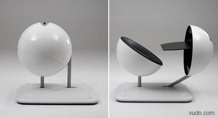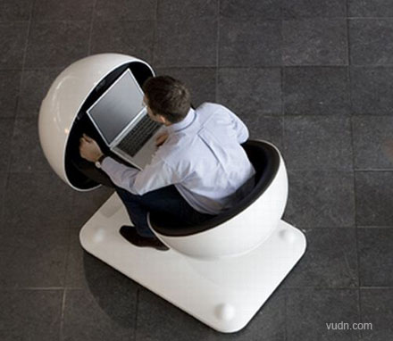 這款電腦桌的外形很科幻,是一個(gè)圓球形。當(dāng)需要使用時(shí),只需要將其中的一半放至一個(gè)合適的角度,我們就可以將筆記本電腦放在一個(gè)平板的桌面上,然后坐在另外的一個(gè)半圓上。這樣的桌子適合公共場(chǎng)所,不僅很美觀,而且很實(shí)用。