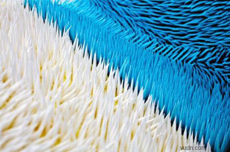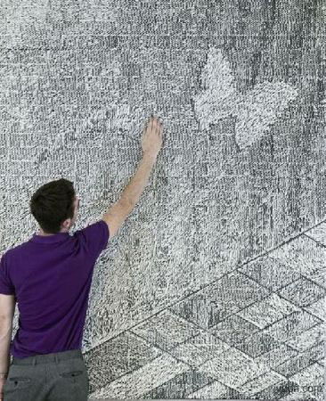 一般在墻上涂鴉后,上面留下的作品很難被擦除掉。如果您喜歡在自己室內(nèi)的墻上涂鴉,不妨看看這個小創(chuàng)意:無需弄臟墻壁即可隨意涂鴉。這款涂鴉墻采用硅樹脂作為底襯,上面覆蓋了65000塊厚厚的聚丙烯纖維塊。用手輕撫,墻體表面的“絨毛”便會伏倒,讓墻壁呈現(xiàn)出各種不同形狀的陰影圖案,只是清潔起來相對比較麻煩一些。