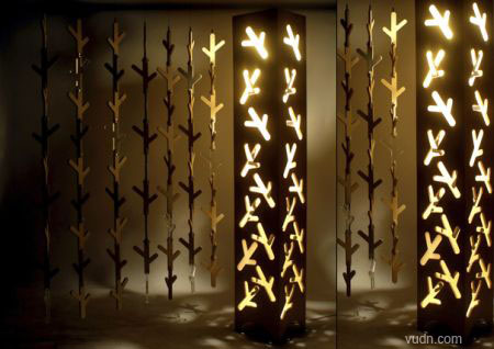 把這款“樹杈”裝飾燈從商店里抱回家,首先得把“樹杈”與模版分離。如此一來,一串串自然連接起來的“樹杈”就可以并列懸掛,充當裝飾簾子,而這款簾子還能客串掛鉤角色,讓主人隨手即可將帽子、圍巾等小物件放置起來。至于剩下的模版就可以進行粘合,里面安裝好燈泡,一款光影裝飾燈便也新鮮出爐了。