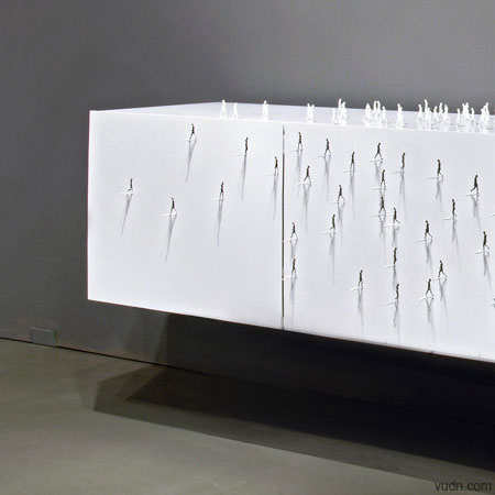 由設(shè)計師Dimitri Vangrunderbeek設(shè)計,柜子表皮由薄鋼板制成,表面鑲粘有小人裝飾,遠(yuǎn)看猶如廣場上來回走動的人群,創(chuàng)意十足。