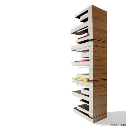 這款書架適合那些喜歡書的朋友,書架上參差不齊地留有高矮胖瘦不一的木條,書籍只能擺放在木條中間,書架可以正放、倒放、側(cè)放,都可以很方便的收納書本。