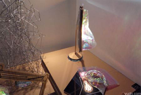 這款臺燈主要的支撐部件是一塊薄板,上面附加有一層按照普通臺燈剪影剪裁而成的線路板。電流會經由這塊安全的線路板輸入臺燈頂端的LED發光部位,讓光線穿過透亮的燈泡外形燈罩,照亮工作臺。