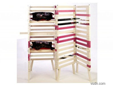 我們為這款物品架起了一個很矛盾的名字,叫:分隔交叉物品架。因為在您使用這款家具的時候,會遇到這兩個問題,它可以將物品分別放在不同的隔斷里面,起到分隔的作用,當您需要收起物品架的時候,它們之間是交叉在一起的,看來它非常好玩兒。所用的材料是:樺木,高:170厘米,寬:60厘米一個隔斷。