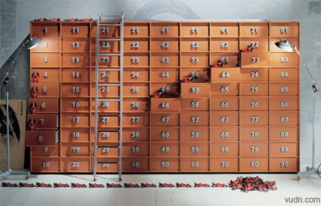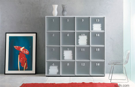 這樣的家具用在集體宿舍或公共場所最為適合,就好象超市里面的儲存箱。不過這里介紹的這款物品柜樣式放在家比較協調,對于物品種類繁多的朋友,或許是一個比較不錯的選擇。找東西很方便,而且容易被記住。或者還可以用這些數字來區分使用者,例如:單號是老婆,雙號是老公,零則可以是小寶寶專用。