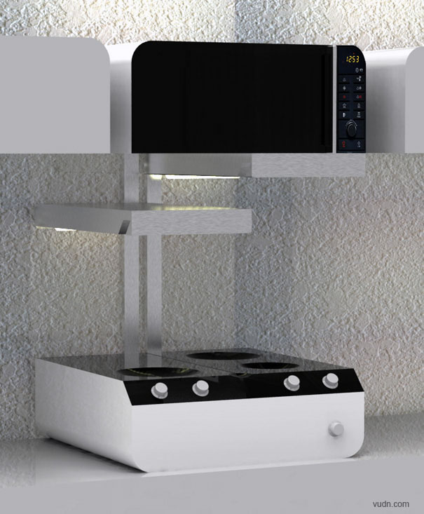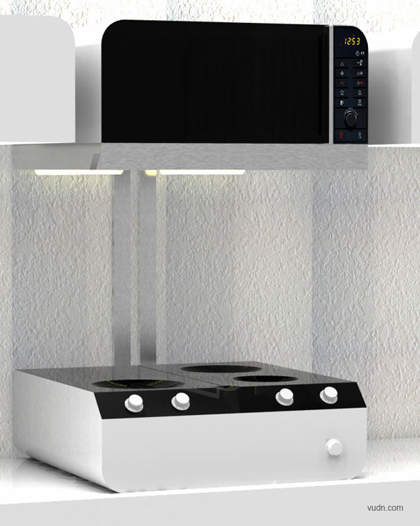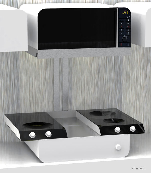 這是一個集微波爐、電炸鍋于一身的印度式設計廚具,電炸鍋可以做出很多美味的印度菜,同時產生的油煙氣體被上面的引擎蓋所吸走。大家發現它是一個相當有效率的設計了嗎?我特別喜歡印度食物,但是發現香料的味道是如此強烈,經常被嗆得流眼淚,但是有了這個產品就不怕了。