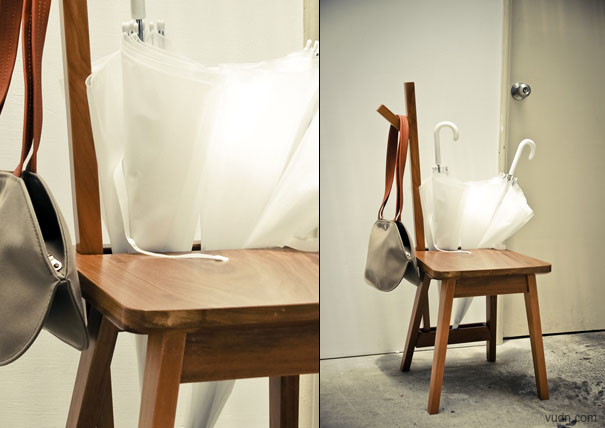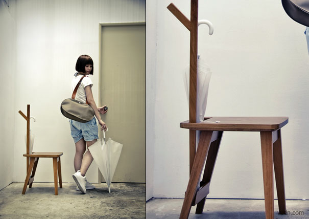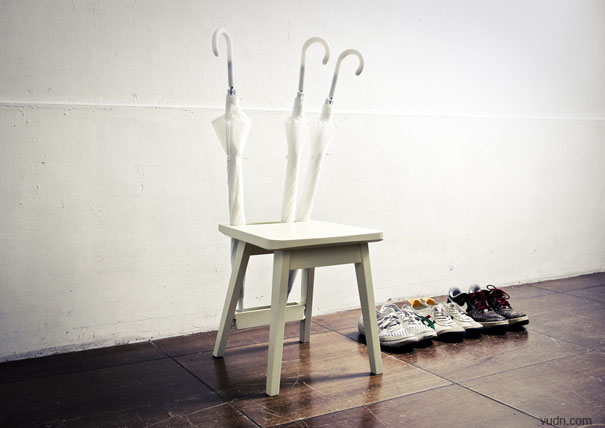 房門后面不僅能放鞋架,而且能放這樣的一把椅子。它跟平常的椅子一樣有四只腳,但是它多了套在背后的兩條橫杠,還有插在橫杠的一根柱子。它之所以這樣設(shè)計(jì)是有理由的,當(dāng)你出門的時(shí)候你可以坐在上面穿鞋,舒服又自在。你還可以把雨傘插在背后的橫桿上,把包包掛在柱子上,一切都顯得那么有條不紊。這么實(shí)用的東西,你還會(huì)猶豫嗎?