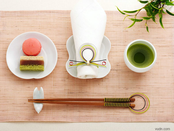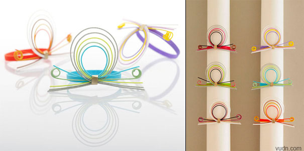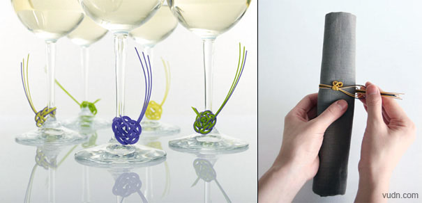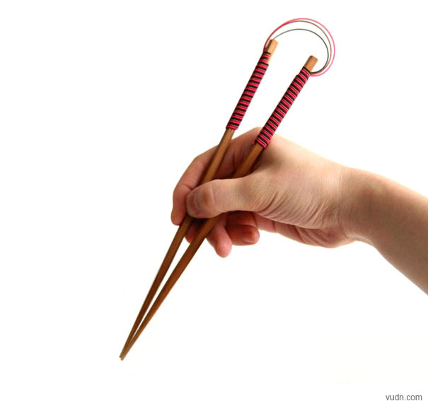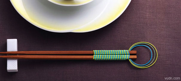 隨著紙工藝的流行,繩工藝也越來越有創造力,它不但應用于服飾的裝飾,筷子也被修飾的無與倫比。單調乏味的筷子被錯綜復雜的繩子環繞,五顏六色的視覺感增添了我們的食欲。兩根筷子連掛在一條繩子上,這樣也避免了吃飯的時候有一根筷子會掉下來。