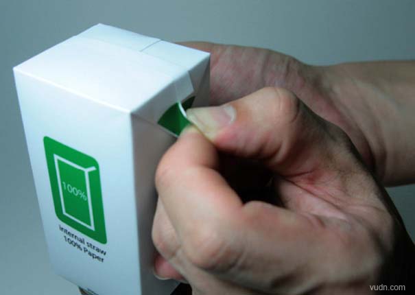 現在的社會越來越追求綠色環保的產品,而外塑料吸管也就隨方塊吸口的出現而越來越少了。在紙瓶的一方設計一個方塊形的易撕口,完全代替了沒有吸管的麻煩。折疊整齊的方塊,簡單,舒適,輕松擁有。