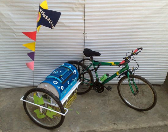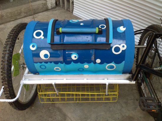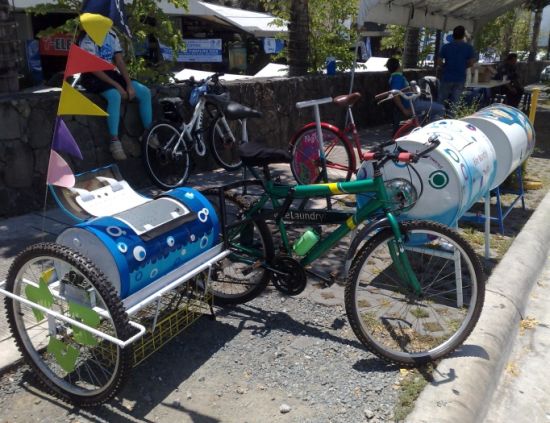 在流行低碳又環保生活方式的今天,菲律賓設計師Mitch Shivers給我們帶來一個絕對完美的低碳設計,用自行車作為驅動力的洗衣機。這種新式洗衣機將一個洗衣的罐子巧妙地連接在了自行車上,通過人們對自行車騎塌產生的力來進行衣服的清洗。這樣,當人們外出游玩或購物時就得到了清潔的衣服。既鍛煉了身體,又方便了生活,可謂一舉兩得。