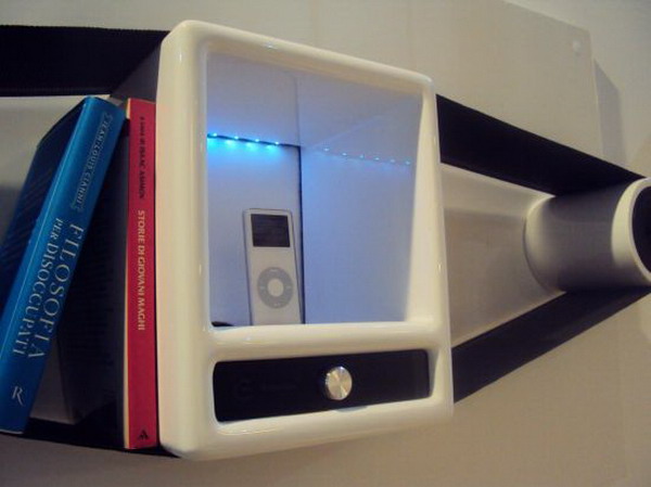 書架和揚聲器都是我們日常生活中普遍存在的物品,如今,意大利設計師Arianna Vivenzio將兩者巧妙地結合在了一起。這種新式設備以一個繃帶為主要框架,其中可加入iPhone和iPod等音樂設備,兩邊的40瓦揚聲器掛鉤也充分地展示出了該產品的優良音樂性能,而其可與電視、錄像機等相連接的功能更是方便了更多的用戶。