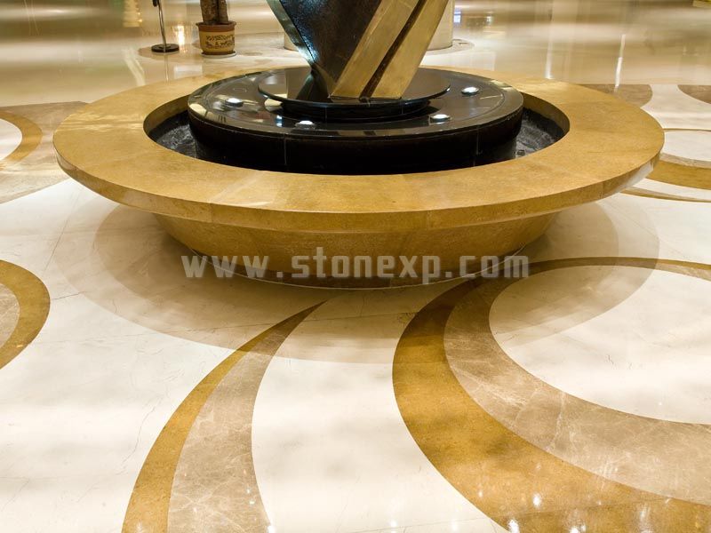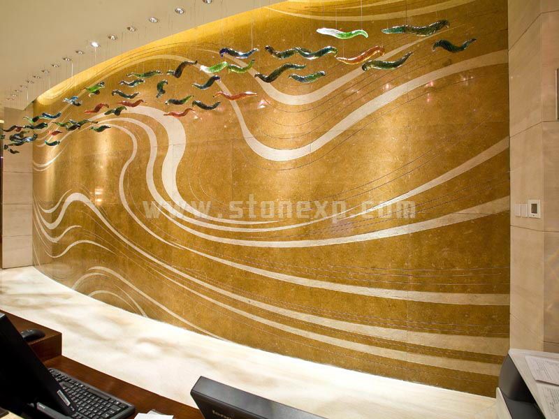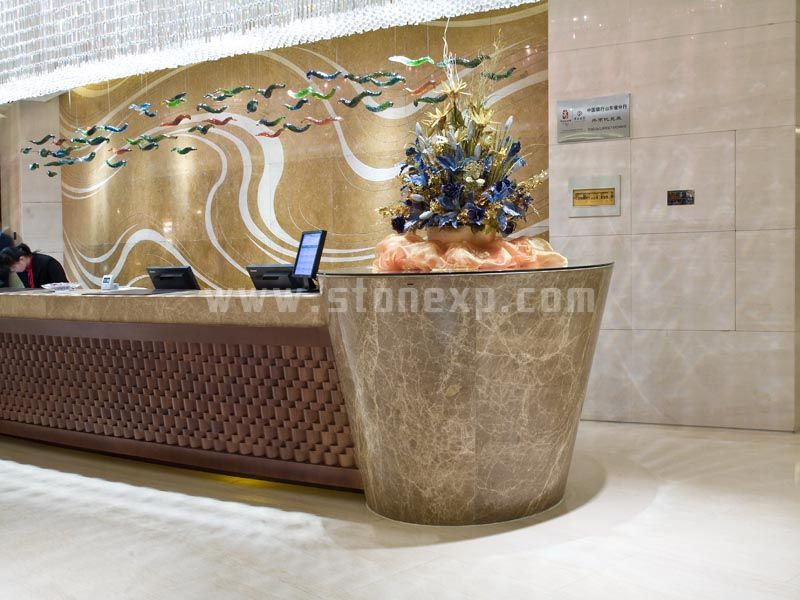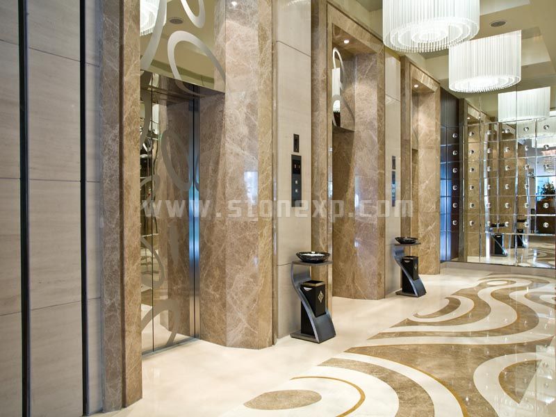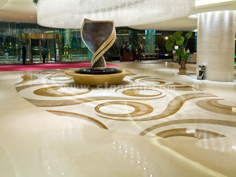 亮點:旋轉樓梯,地面無縫拼花 、大堂背景墻拼花。