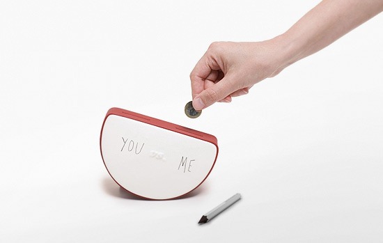 這個可以左右搖擺的存錢罐有兩個投幣孔和兩個隔開的存儲空間,哪邊錢多了就會下沉,就像玩兒起蹺蹺板??梢杂盟驽X,也可以用它存儲生活的美好,比如一個人做了件值得表揚(yáng)的事情就獎勵他一枚硬幣,沉得下去的最光榮!呃,其實(shí)可以同時準(zhǔn)備兩只,另外一個用來存惡事,做錯一件事喂它吃游戲幣!沉下去的最邪惡。