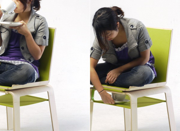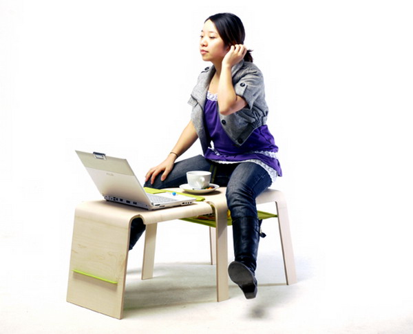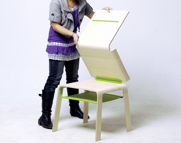 來自wing fung ng的多功能折疊椅設計,這個椅子適合比較小的居住環境,當咖啡桌或是電腦桌,不用的時候折疊起來當椅子,可以節省很多空間。