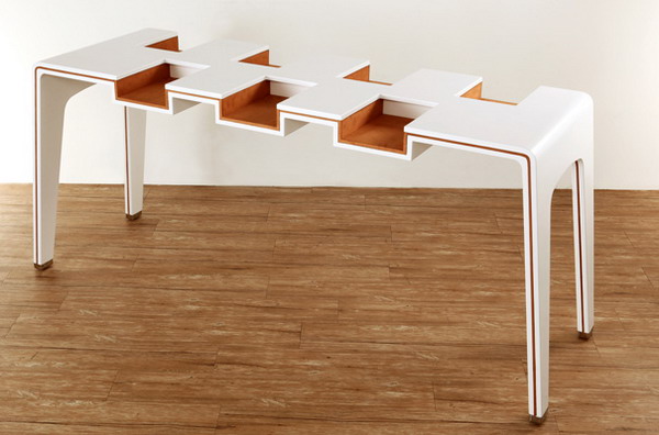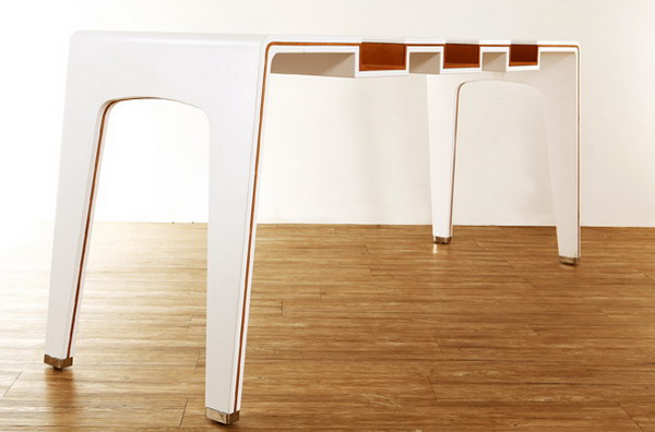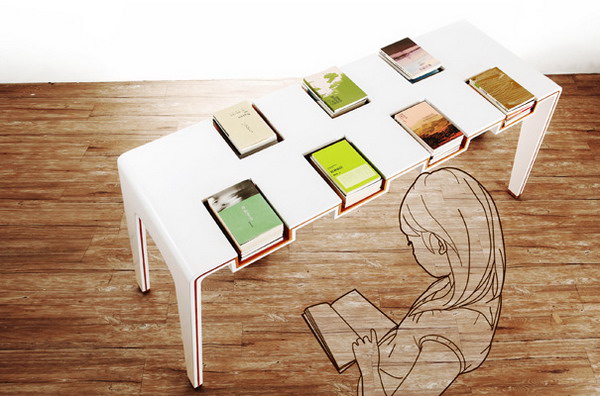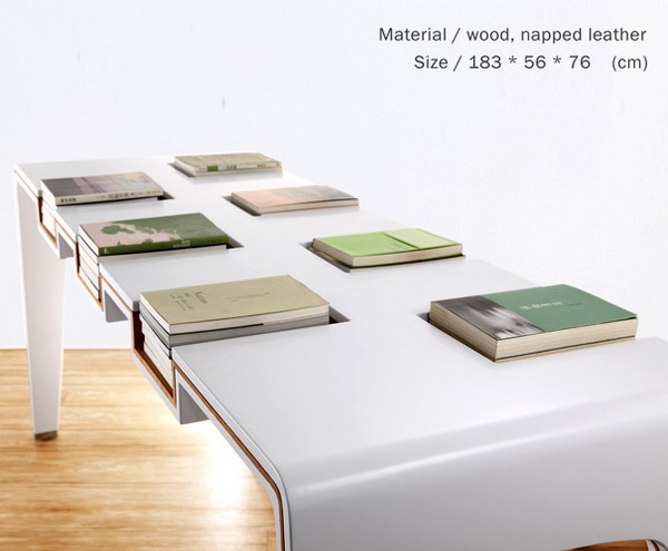 獨特的桌子,去打造不同的圖書館或者是展覽,在桌子上有著很多槽,分別用來放置書籍,就可以直接坐在那里選擇和閱讀。