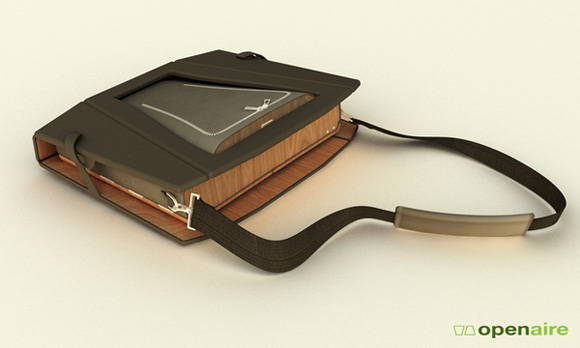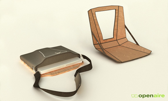 Openaire 是一個手提包形式的筆記本支架,外部可以成為椅子,內(nèi)部是筆記本的架子,當(dāng)然,它也是空心的,用來在里面放入筆記本電腦。在外面清新的空氣進(jìn)行工作、聊天的時候,這是很方便的形式。