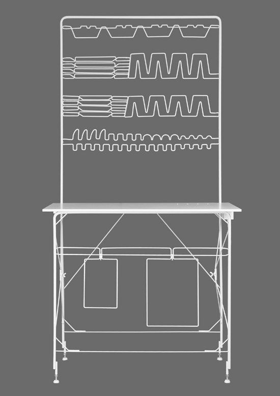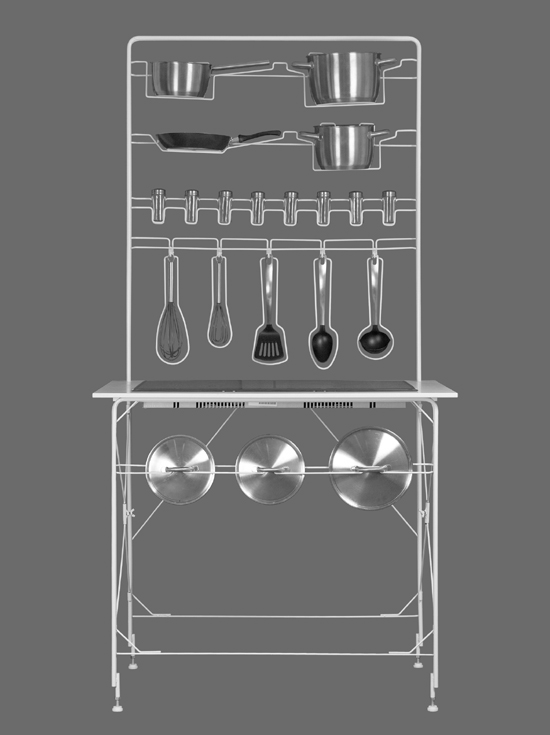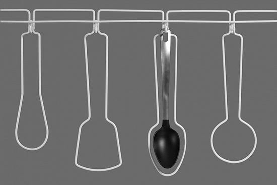 德國設計師 Burkhard Schaller 利用彎曲的線條制作了這種簡約、簡單的廚具放置架,所有廚具放置的部分,都有著它線條的形狀。基本用于小型戶家庭,或者說是家以外的辦公室等之類的,比較節省地方和方便拆卸。