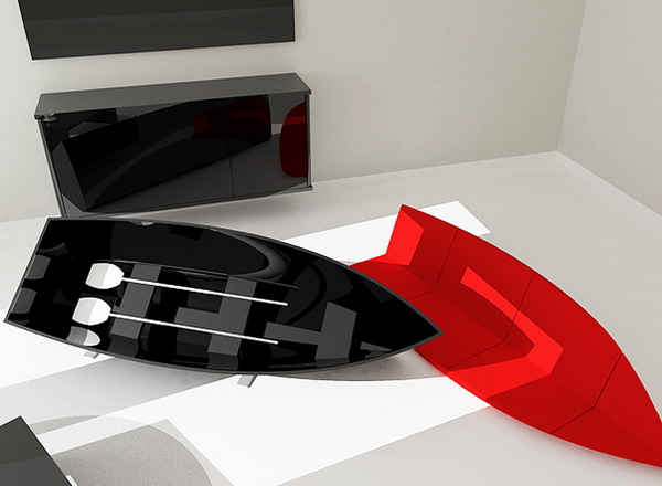 簡(jiǎn)單地說(shuō),這貨既是船,也是沙發(fā),平時(shí)放在室內(nèi)使用沒有任何問(wèn)題,船一樣的造型還挺有風(fēng)格。而必要的時(shí)候 (我們都希望這種必要性永遠(yuǎn)不要出現(xiàn)~),拆掉沙發(fā)墊子——這就是一個(gè)標(biāo)準(zhǔn)的船艙啊,而且還藏了兩把槳!!這下,2012,全都變成浮云了,把沙發(fā)推到水中就能劃著去方舟了。