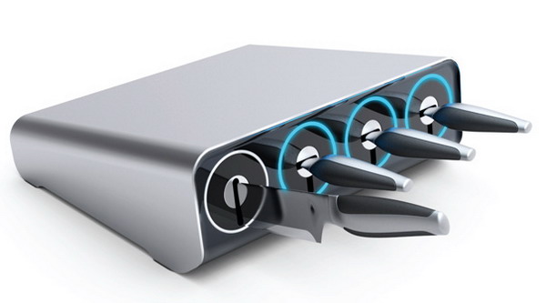 現有刀插都存在什么樣的問題?我們看來,最大的問題可能是安全,任何人都可以輕易地將刀從刀插中取出——這對你我會是一種方便,但是對小朋友而言,卻是潛在的危險……