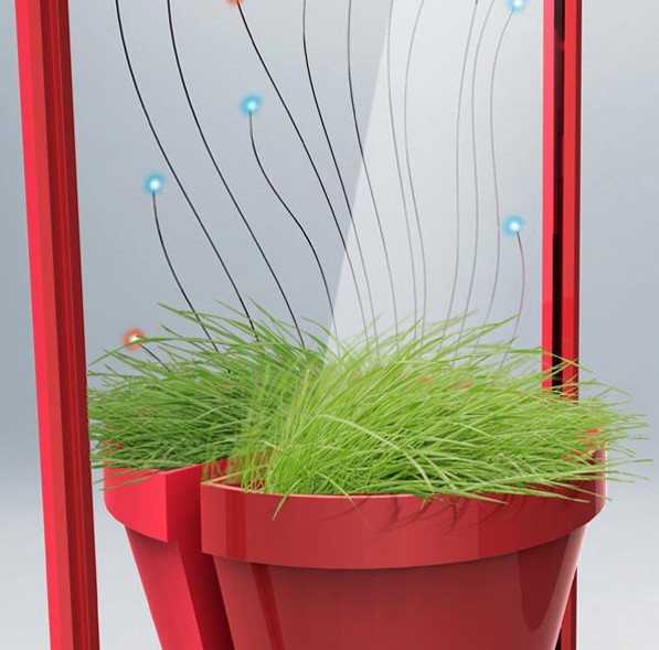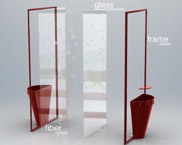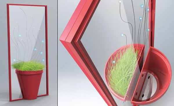 生活中的點點滴滴都可以注入環保的元素,例如我們每天早上起來對著的鏡子。Julien Bergignat,Mathieu Azema,Arthur Brault等多人設計了一款概念環保產品,這是一款可以擺放在家中的綠色鏡子,它由有機玻璃塑料框架以及光學纖維組合而成,并在鏡子的下方設計了花盆,可以在穿衣的同時感受到綠色帶來的好心情。虛擬的綠色盆栽在真實的世界里也顯得特別的生動。