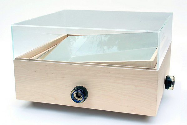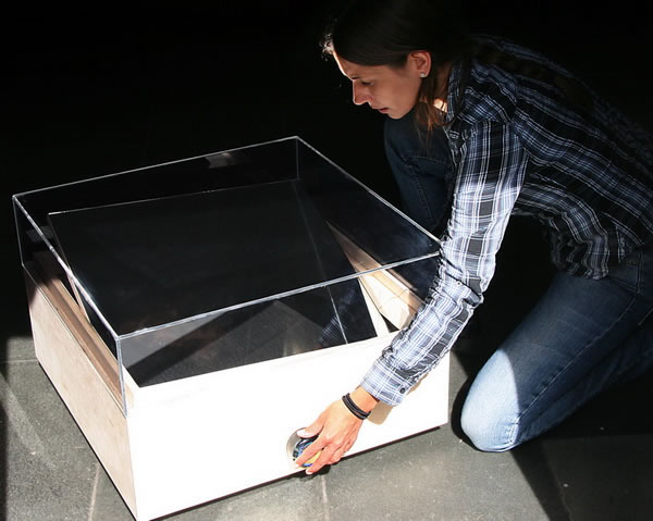 這款“pure sunlight”桌子是挪威事務(wù)所 igland design設(shè)計的,這個設(shè)計在不借助電池、配電盤或其它技術(shù)的前提下、可以將太陽光反射到房間內(nèi)的天花板上和墻上,成為白天的環(huán)保照明裝置。 使用者可以旋轉(zhuǎn)桌子邊上的按鈕來調(diào)節(jié)嵌在其內(nèi)部的鏡子,當(dāng)鏡子轉(zhuǎn)到一定角度時,便可以捕捉陽光。