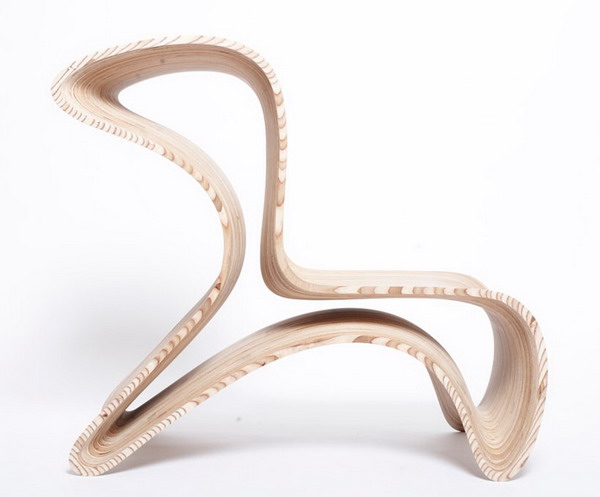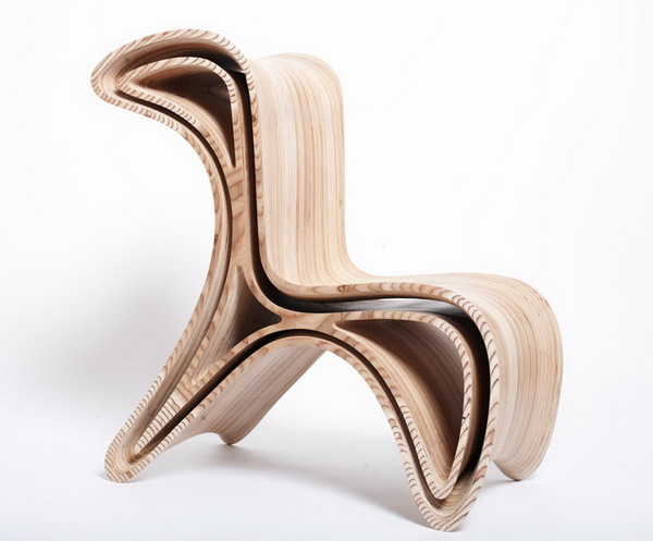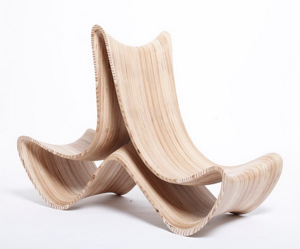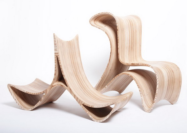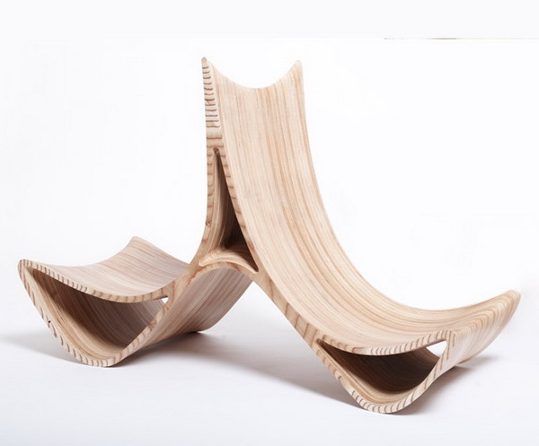Triwing座椅給人第一印象就像高數曲線一樣蜿蜒優雅,層疊的木紋表面讓它看起來更是如行云流水一般,最巧妙的是它不但曲線優美,還能變身:首先,它有內外兩層,將內部那一層抽出來,便成了兩張獨立的座椅,而且而且,這曲線造型原來是另有奧妙的,平放的時候是一張單人座椅,把它翻過來換個角度,便成了可以背靠背坐著的二人座椅。