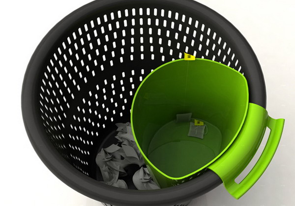 中國設計師胡馨園 (音譯,Hu Xinyuan)出于方便垃圾分類的考慮,設計了這個桶內有桶的Trash Classification家用垃圾桶,其實就相當于是在普通的紙簍上掛了一個小一號的桶,廢紙等無機垃圾可投入大桶,而瓜皮果核等有機垃圾則投入小桶,的確達到了有機無機干濕分離的效果。另外,小桶的底部是向內傾斜,這樣就避免了重心向一側傾斜而打翻垃圾。