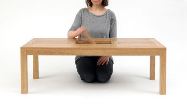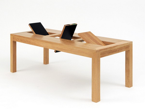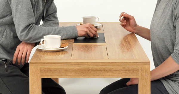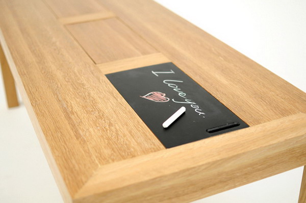 在桌子邊互動(dòng)的形式,從中間可以翻出三個(gè)黑板,在交談的時(shí)候可以?shī)蕵芬环部梢栽谥疤崆皩懞媚承├寺恼Z句,特別的時(shí)刻翻開,讓對(duì)方看到。
