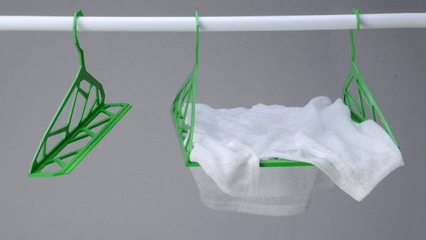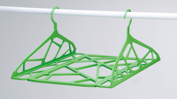 當我們需要曬被單蚊帳等物時,普通的衣架顯得有點愛莫能助。為此,設計師Jhih-Jie Liou 和 Wei-Lun Wang帶來了一款L形衣架,每個衣架的底部都有可咬合的接口,兩個衣架通過它即能拼接在一起,形成一個大的晾物架。