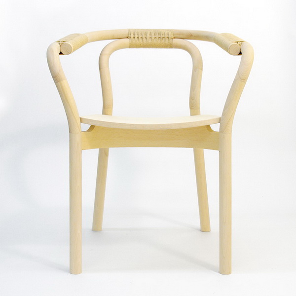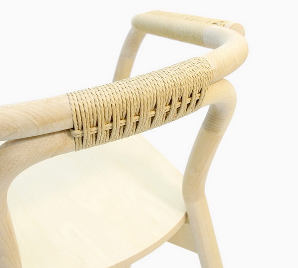 這把簡潔的扶手椅使用實心的山毛櫸木、膠合板以及繩子制作而成。日本設計師tatsuo kuroda設計了這個叫做“knot-chair”的扶手椅原型。前后的椅子腿分別伸展出來,相互連接形成了椅子的扶手和靠背。繩子將這些木質構件緊緊纏繞、連接起來,不僅支撐了座椅的整體結構,還增加了視覺美感。這件家具的整體尺寸為590 x 730 x 540 mm。