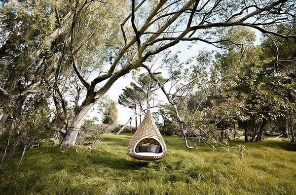 法國設計師daniel pouzet和fred frety為戶外家具品牌dedon創作了一個“nestrest”室外吊艙休閑椅。這個水滴狀的休閑椅可以放置在平地上,也可以吊掛在樹上,這種形態為使用者提供了一個隱居式的庇護所。當nestrest懸掛在空中時,它會隨著風和人的身體輕微擺動。座椅的材料選用了厚重的編制纖維,所以不管是在現代的場所還是在原生態的自然環境中,nestrest 都能很好的隱藏其中。