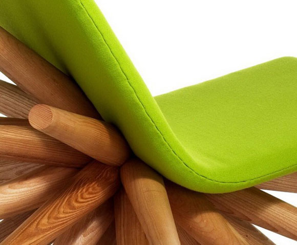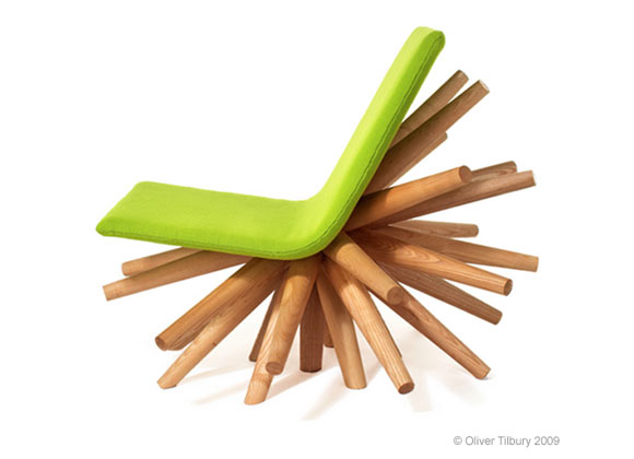 這款設計時尚個性獨特的椅子由英國家具設計師Oliver Tilbury設計,名為Burst Chair。Burst Chair比起傳統椅子最大的特點就是它有無數條腿,不管你從哪個方向偏倒它都會伸出腿去支撐。Burst Chair的椅腿部分材料采用的是美國?q木木料,坐墊部分采用高密度聚乙烯泡沫進行填充,表面采用布料織物。