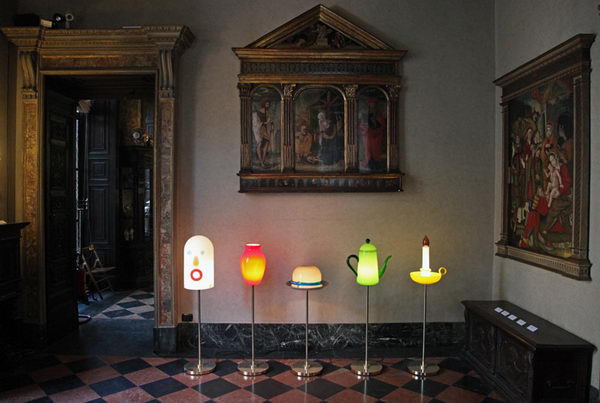 artlight是荷蘭設計團隊studio job為意大利工藝玻璃公司venini設計的最新系列作品 artlight 包括五盞落地燈——“臉”,“花瓶”,“帽子”,“巧克力壺”,和“燭臺”——以及一盞完成版的吊燈“ 'arnolfini ”。
