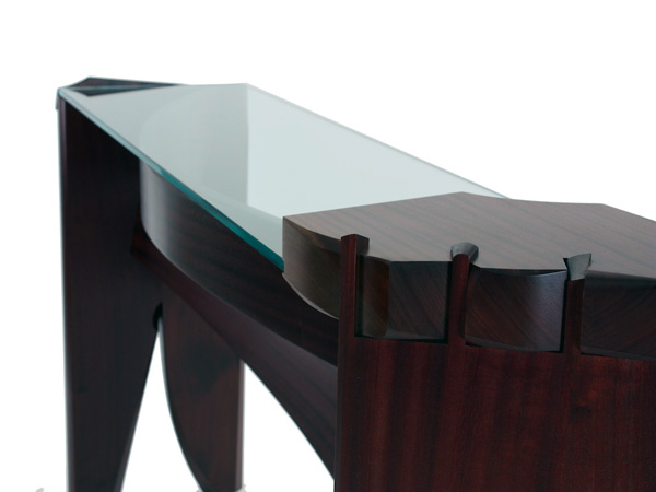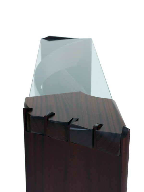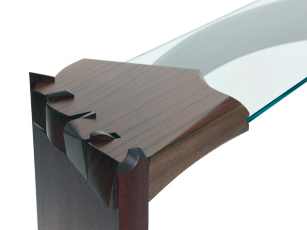 名為「彎弧的?尾」的這張咖啡桌,乍聽之下可能沒什么想像空間,但它的美麗是在創(chuàng)造過程中得以展現(xiàn)。設(shè)計(jì)師Nico Yektai決定讓隨性做主,使得細(xì)致的接榫工藝和毫無章法的彎曲圖案成了這件家具的最大特色。一開始時(shí),Yektai在主體的外型上只粗糙的做了個(gè)大概,接著便全程手工雕出接榫和桌腳,而在做支托時(shí),則用上了他獨(dú)創(chuàng)的夾鉗「折木」手法,最后完成了一件令人分不清楚究竟是雕刻還是設(shè)計(jì)的作品。