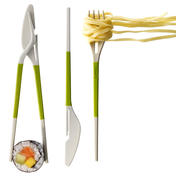 這是來自 Adrian 及 Jeremy Wright的設計。看似簡單,但尼龍與橡膠模的材質增加了耐久性,而最酷的是刀子和叉子可以結合成一個類似彈簧筷的餐具。