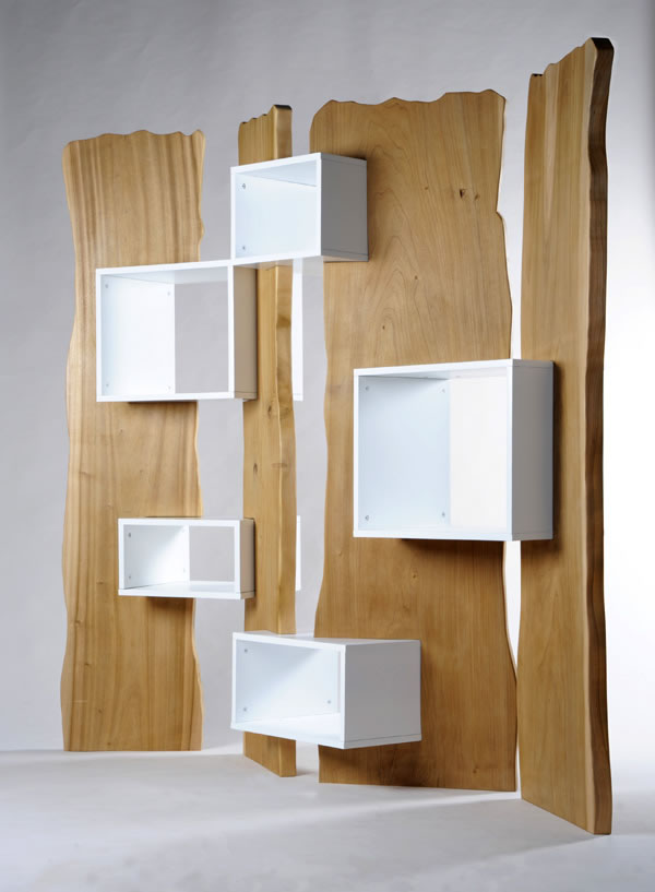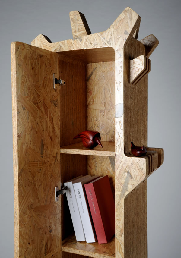 作者:梁瑜斐 指導教師:丁嘉明 這是一個屏風跟書柜的結合。靈感來源于樹林中穿插著鳥屋的自然景象。日光透過屏風射進來,帶給使用者如置身于樹林的影子中的感覺。屏風的輪廓是按照樹木生長的不規則形態設計。然后用規整的白色木箱子穿插其中用以鏈接屏風。整個家具都能拆成板狀,方便包裝與運輸。