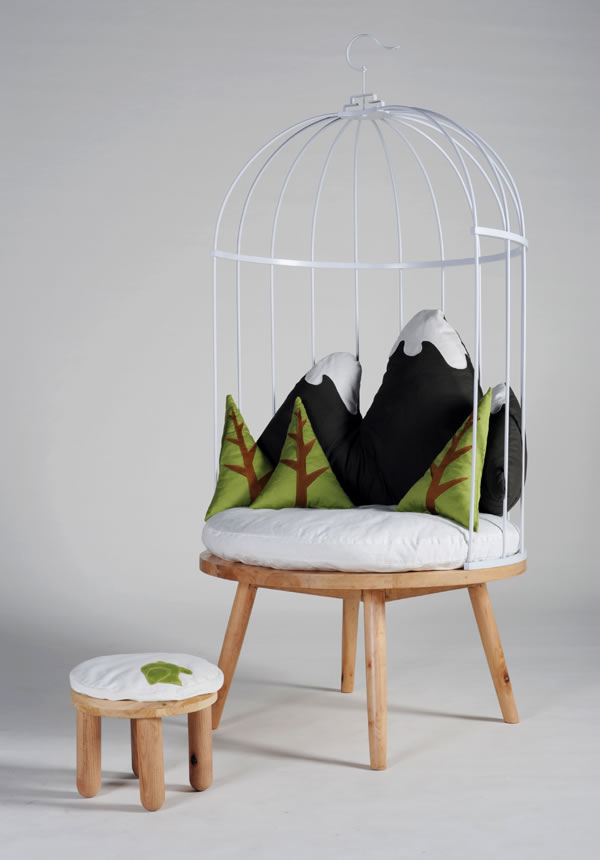 作者:劉宇 指導教師:丁嘉明 椅子以鳥籠為設計元素。鳥籠,既是安逸舒適的港灣,又是束縛自由的枷鎖。“籠中椅”就是表達了這種矛盾的情愫,然而當人們置身籠中時又會是一種怎樣的情懷呢?