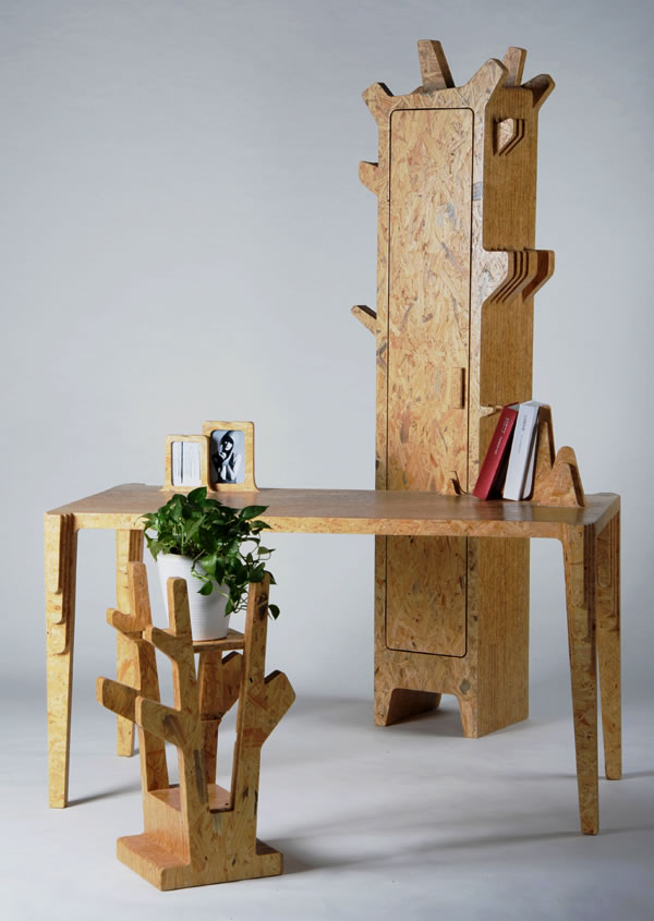 作者:林華仁 指導教師:磨煉設計說明:人們總是習慣性的在家具上放東西、擺設裝飾品、增加功能部件等。為了滿足這些需求,于是設計了這一系列家具。這些家具主要特點是把依附于家具上的裝飾品、功能部件、生活用品等融入到家具中。被融入的物品經過抽象化處理成為家具的一部分,就像從家具中長出來一樣。如書桌上的相框與文件架。這樣既可以滿足人在潛意識里對家具功能與情感的需求又使之造型變得更加獨特。