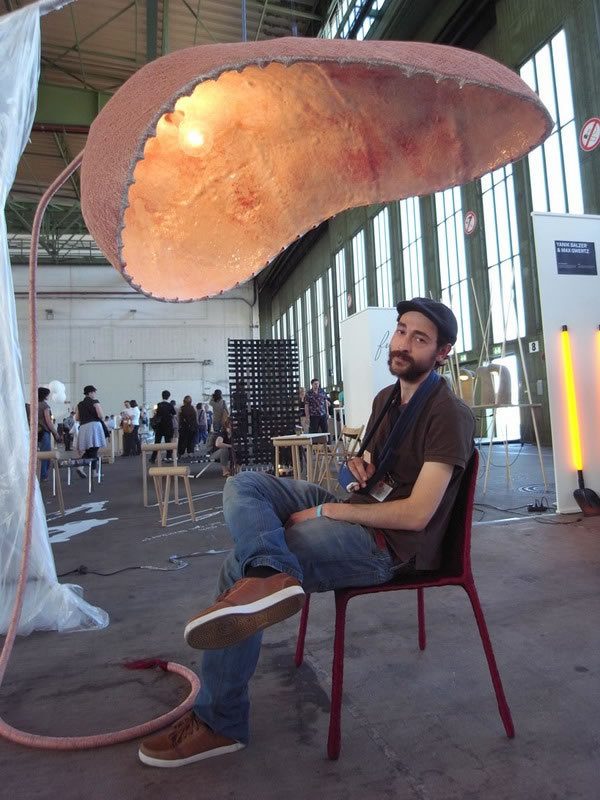 意大利裔荷蘭設計師salvatore franzese最近在DMY berlin 2011(DMY柏林國際設計博覽會)上發布了自己的最新作品:“生育”燈具,“懷孕”椅和臺燈。在這組作品中,設計師探索了生活與藝術創作的起源,他用細線分層的纏繞包裹,制作出具有獨特質地的家具。這種手工技藝在家具的金屬骨架傷創造出了有機的“表皮”效果。