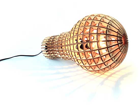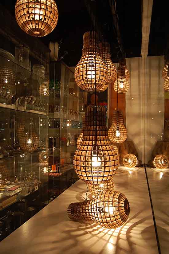 這個來自設計師Barend Hemmes的作品,充滿著創意的閃光點。木質的外形采用了燈泡的造型,內部的燈光透過木框架投射出來,能讓人聯想到中國的燈籠,卻又比燈籠現代、時尚,適合裝飾在服裝店、藝術品店中。