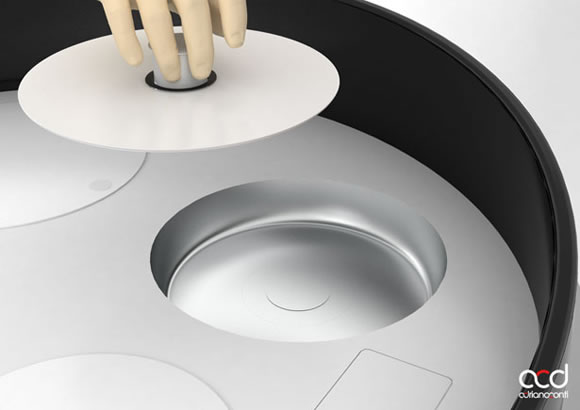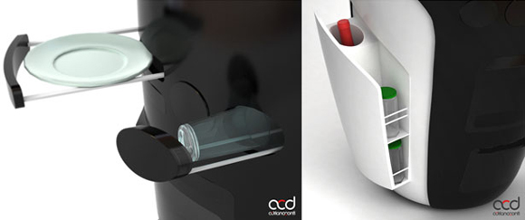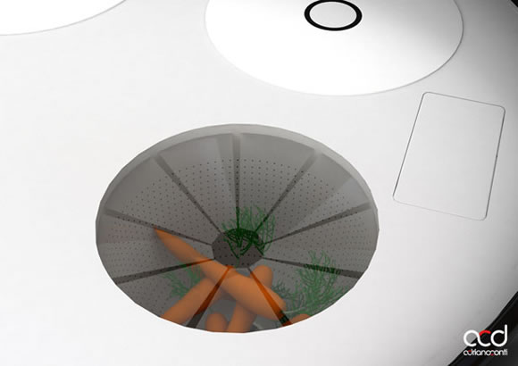 未來有種可能性,那就是一個(gè)比較擁擠的生活空間。這就需要重新思考和分配生活空間了。這個(gè)多功能的小廚具設(shè)計(jì)就把生活必須的工具合并在了一起,名叫minikitchen迷你廚房。它集合了系統(tǒng)烹飪功能、蔬菜清洗、烤箱、冰箱和洗碗機(jī),滿足你日常各種使用需求。更能減少烹飪時(shí)間和節(jié)約電能。再看它的衛(wèi)生清潔系統(tǒng),它使用壓縮空氣清潔、蒸汽脫脂和紫外線消毒。