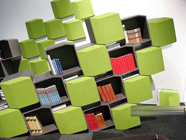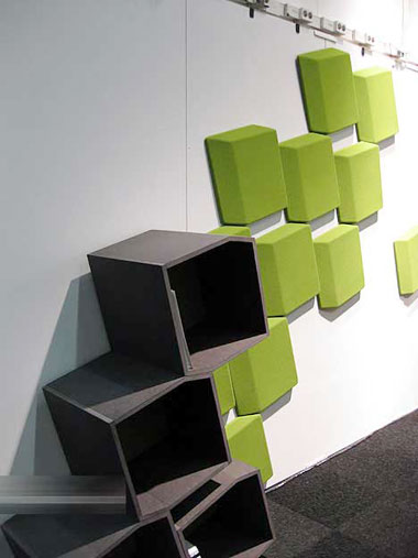 “Permafrost”還是一個模塊化的書架,一個輕微的角度,就像從地里生長出來,根據自己的需要增加或減少模塊,即是書架也可以用作房間的分隔,也擁有不錯的吸音功能,就是這個綠色的蓋子。